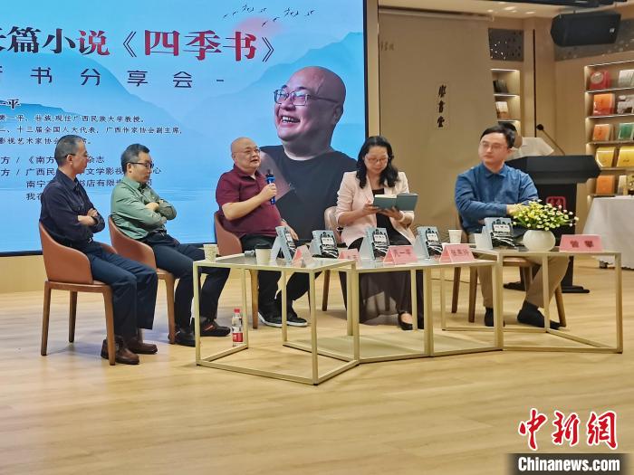 當(dāng)天,由《南方文壇》雜志主辦的凡一平長篇小說《四季書》新書分享會在南寧市舉行。凡一平攜新書出席,東西、張燕玲、張柱林、李約熱、朱山坡、田耳等作家、評論家以及高校師生、文學(xué)愛好者約100人參加。