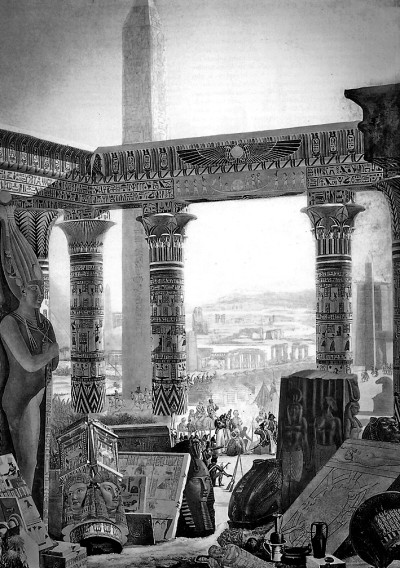 不過,真正使埃及古文明得到新生的,關(guān)鍵還在于拿破侖軍隊中的近200名著名學者,他們中有東方學家、藝術(shù)家、數(shù)學家、化學家、醫(yī)生、建筑師、工程師、自然科學家、社會學家等,其任務(wù)是考察埃及社會的方方面面,“探索、繪圖,并對不為人知的埃及進行全方位的描述、探查和研究”。這些學者回國后,把他們在埃及的所見所聞、對埃及風土人情的素描和制作的拓片等精心整理出來,于1809年至1829年之間,陸續(xù)編纂和出版了24卷本的《埃及記述》(又譯作《埃及志》等)。該書一經(jīng)問世立即引起轟動,它是第一套系統(tǒng)性介紹古埃及文明和社會面貌的科普百科全書式讀物,內(nèi)容極為豐富,插圖之精美、裝幀之考究,都令人稱贊。