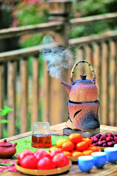 在福建省武夷山市,人們圍爐煮茶。新華社發(fā)