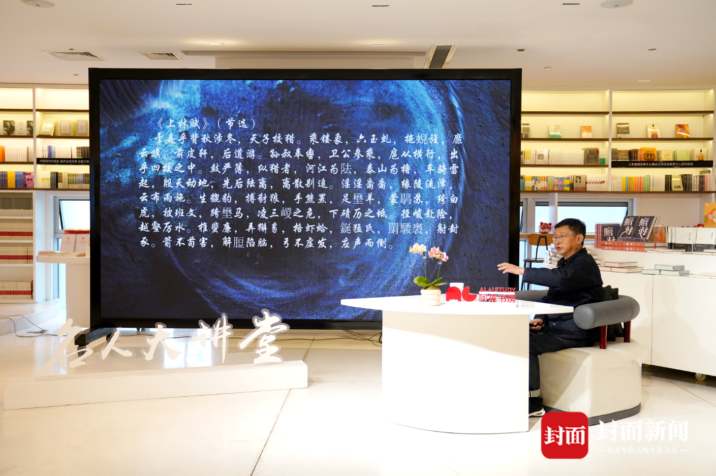 作為資深作家,阿來在講述司馬相如其人以及他所處的時代特點、文史知識同時,還重點從文學(xué)的角度,講解了相關(guān)文史記載文章,還特別以《子虛賦》《上林賦》等司馬相如的作品為例,逐字逐句進(jìn)行分析“賦”這個文體的優(yōu)、缺點。比如在《上林賦》中,司馬相如寫楚國之子虛先生出使齊國,子虛向烏有先生講述隨齊王出獵,齊王問及楚國,子虛極力鋪排楚國之廣大豐饒,以至云夢不過是其后花園之小小一角。烏有不服,便以齊國之大海名山、異方殊類,傲視子虛。
