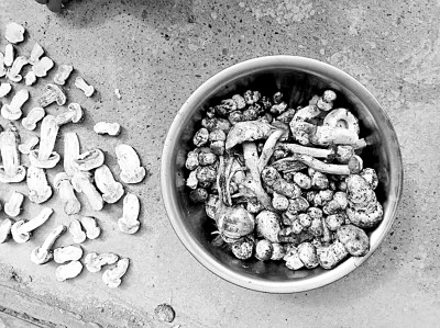 在縣城唯一的山珍市場內(nèi),專營蘑菇的個(gè)體戶不急不躁地守著攤位,面前是一堆堆清早收購來的散發(fā)著泥土芬芳的各色蘑菇……專程趕來的當(dāng)?shù)厥晨突蚺紶柭愤^的外地游客,看著如此新鮮的蘑菇,都會(huì)買上個(gè)十斤八斤,回去后用保鮮袋分裝在冰箱里隨吃隨拿,或者曬成干蘑菇吃得長久些。個(gè)頭大的切成薄片,晾曬在水泥地上;個(gè)頭小的用線串成串兒,掛在太陽下暴曬,幾天就好——若遇到陰天,也可以掛在爐火上熏烤。干蘑菇把山野里的芳香氣息集于一身,可謂一種脫俗的山珍野味,無論用來招待客人,還是捎帶給遠(yuǎn)方的親友,都是非常不錯(cuò)的選擇。