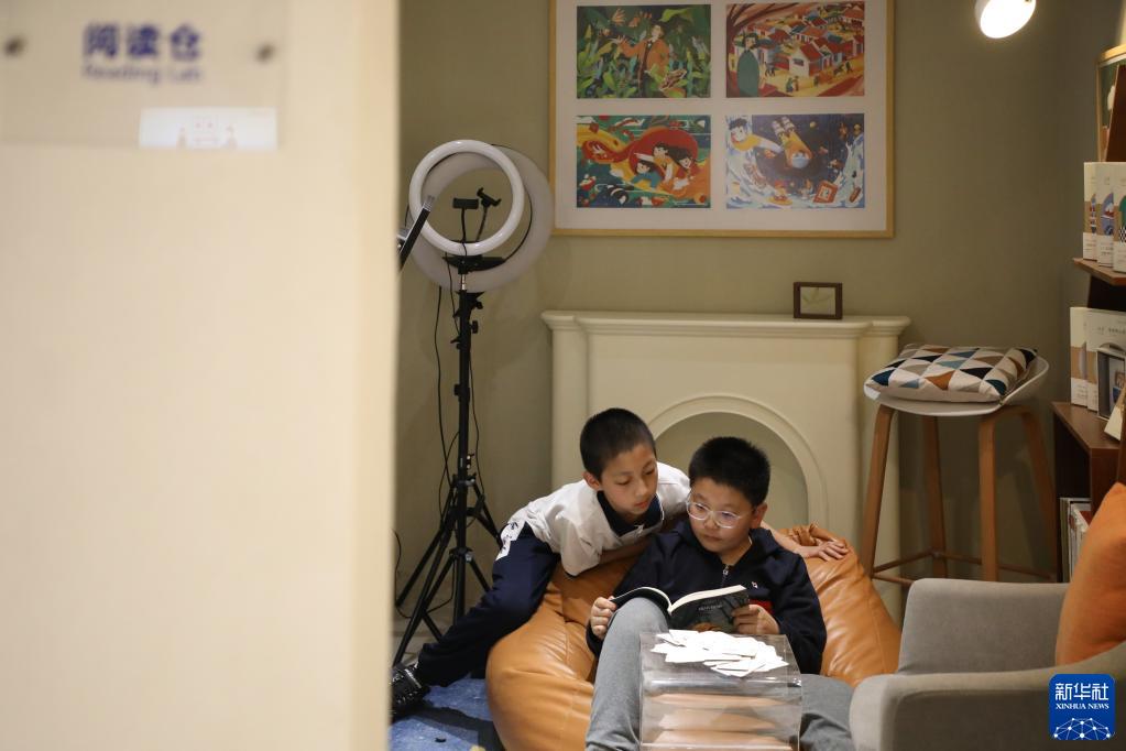 4月1日,在甘肅省蘭州市的讀者出版集團數字閱讀中心讀者小站,小朋友在多功能閱讀倉讀書。新華社記者 馬希平 攝