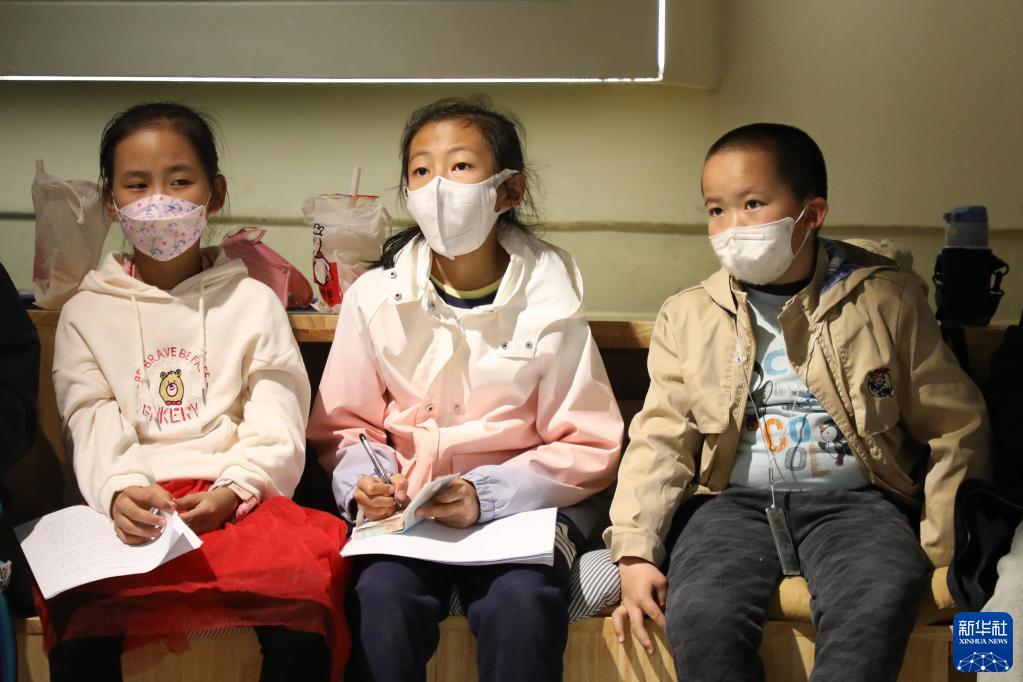 4月1日,在甘肅省蘭州市的讀者出版集團數字閱讀中心讀者小站,小朋友聆聽老師的閱讀分享。新華社記者 馬希平 攝