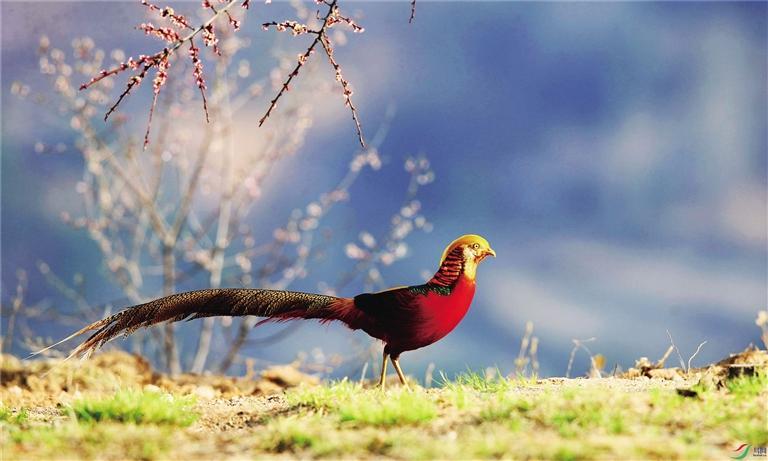 紅腹錦雞,是一種非常漂亮的飛禽,當(dāng)?shù)胤Q為野雞,體形比家雞略小,雌性全身灰麻色,雄性體形略大于雌性,從頭到尾依次長有黃、紅、墨綠、黑色等羽毛,夏季產(chǎn)蛋孵化培育下一代,一般成對生活,以食草籽和昆蟲為生,善飛行,是甘肅省的省鳥,在甘肅全省大部分地方都有分布,但在此地,雖未絕跡,卻很少見到。