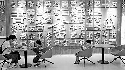 7月24日,家長(zhǎng)帶孩子在位于呼和浩特市的內(nèi)蒙古新華書(shū)店內(nèi)閱讀書(shū)籍。丁根厚攝/光明圖片