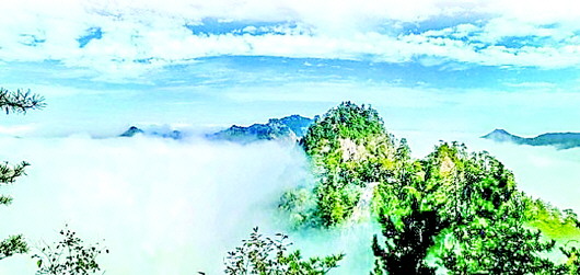 然而,天水石門山的饋贈還不止這些。由于石門山地理位置特殊,宜人的氣候經常會造就氣勢磅礴的浩瀚云海。云海平靜時,云霧便在半山腰停住腳步。站在山巔遠眺,只見腳底下半山腰白霧團團,感覺自己在云山之巔,飄飄欲仙。“不知天上宮闕,今夕是何年?”此情此景,比畫更有靈氣,比詩更具意境。置身其中,感覺空氣都被浸潤得芳香四溢,令人心曠神怡。
