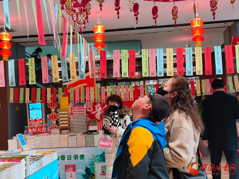 中國(guó)甘肅網(wǎng)2月21日訊 (西北角·中國(guó)甘肅網(wǎng)記者 張?zhí)m琴)這個(gè)周六就是元宵節(jié),從今天開(kāi)始,甘肅省新華書(shū)店在全省各門(mén)店開(kāi)展的猜燈謎活動(dòng)拉開(kāi)了鬧元宵系列活動(dòng)的序幕,也將“書(shū)香潤(rùn)隴原 文化過(guò)大年”系列活動(dòng)推向高潮,進(jìn)一步讓“進(jìn)書(shū)店過(guò)大年”成為新時(shí)代年俗和龍年春節(jié)里一抹亮麗風(fēng)景。