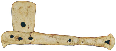 一件有柄穿孔陶斧引發(fā)關注。它由泥質(zhì)紅陶制成,分柄和穿孔斧兩部分,柄為橢圓形棒狀,前粗后細,前端翹起,有淺槽可嵌入穿孔斧。槽后有三孔,可穿繩縛住穿孔斧,使其固定在槽內(nèi)。柄后端作半月形,并有三角形穿孔。這件有柄陶斧雖非實用工具,但為當時穿孔石斧的裝柄方法提供了實物證據(jù),讓我們能想象它的功能。陶器基本是素色,器類齊備、器形多樣,鼎、鬶、缽、杯、盆、瓶、壺、豆等應有盡有。有的夾砂陶中摻雜有蚌殼粉末,體現(xiàn)水鄉(xiāng)地域特點。青墩陶器造型穩(wěn)重、優(yōu)美,線條簡練而充滿動感,顯示出史前青墩人對于生活的感受。