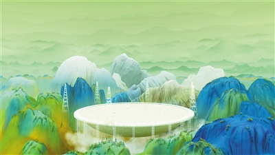 近年來,國風雅韻成為審美新風尚。以《千里江山圖》為代表的青綠山水,啟示美術工作者在服裝設計、工藝美術、舞臺藝術等領域開拓創(chuàng)新。在2022年北京冬奧會花樣滑冰團體賽冰舞自由舞比賽中,一對中國選手演繹了花滑版《只此青綠》,男選手的服裝上繪有“青峰疊嶂”,女選手的衣裙則如“綠水浮云”,隨著冰鞋滑動,青綠相映,剛柔兼濟,藝術之美與競技之美相交融。2023年杭州亞運會開幕式上,北京服裝學院教授楚艷領銜設計的“水天碧”長裙,以漸變的青綠色彩、3D復合工藝制作的亭臺樓閣和樹木紋樣,讓“千里江山圖”的意境隨著舞步緩緩生發(fā)。這些實踐表明,越來越多的美術工作者創(chuàng)新思維、拓展視野,用當代審美激活傳統文化基因。