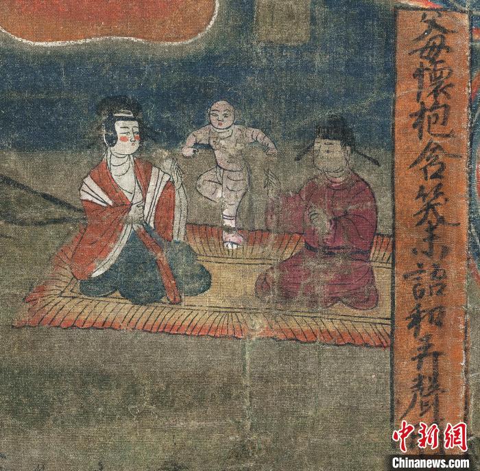 圖為“報(bào)父母恩重經(jīng)變絹畫(huà)”中的“父母懷抱含笑未語(yǔ)和弄聲時(shí)”的畫(huà)面。(資料圖)甘肅省博物館供圖