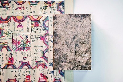 整本書在書口處還特別進(jìn)行了雕刻,并采用噴繪工藝,強(qiáng)化石面凹凸不平的質(zhì)感,讓讀者能夠觸摸書口的不同深度,豐富了觸覺(jué)上的感受。包裹書脊的紗布,經(jīng)過(guò)茶葉染色的特殊處理,呈現(xiàn)出雅致的淺褐色。