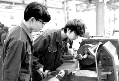 陜西工業(yè)職業(yè)技術(shù)學(xué)院學(xué)生在企業(yè)進(jìn)行實訓(xùn)。王正攝/光明圖片