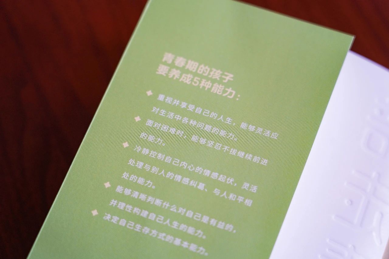 《陪孩子走過青春期》獨(dú)創(chuàng)性地提出“父母幸福是孩子幸福的基石”這一核心理念,認(rèn)為父母給孩子最好的禮物,就是讓自己成為自立且幸福的家長(zhǎng)。倡導(dǎo)父母應(yīng)該先關(guān)照自我,提升內(nèi)在力量,才能構(gòu)建溫暖、相互理解、共同成長(zhǎng)的親子關(guān)系,營(yíng)造出滋養(yǎng)孩子也滋養(yǎng)父母的家庭氛圍。