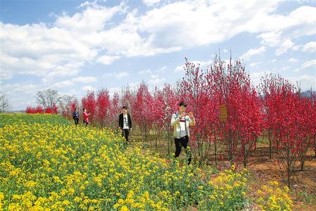 郭坪的麗桃花多為紅色,那紅,于深紅中又透著一種清麗的粉,使繁盛的花朵,飽滿中又呈現(xiàn)出一種吹彈可破的輕盈,而沁人心脾的花香,又使人忍不住就想把臉埋在繁花間,把花香全都嗅進(jìn)五臟六腑。此時(shí),花株猶如無(wú)數(shù)把紅傘,傘下,五顏六色的衣裳與花樹(shù)相映成趣。樹(shù)上的花對(duì)著人笑,地上的人對(duì)著花笑。“去年今日此門(mén)中,人面桃花相映紅。人面不知何處去,桃花依舊笑春風(fēng)。”崔護(hù)的詩(shī)也不知不覺(jué)從腦海里跳將出來(lái)。傳說(shuō)詩(shī)人崔護(hù)的這首《題都城南莊》寫(xiě)的是,他進(jìn)京考進(jìn)士落第,一個(gè)人悵然走到京城南郊。走得口渴到一戶人家討水,一美麗女子站在庭院的桃花下,嬌羞地把一瓢水遞給了他,那女子的美貌驚艷了詩(shī)人的眼睛。第二年春天崔護(hù)復(fù)來(lái)南莊,然而那座庭院里,桃花依然如故,而樹(shù)下卻不見(jiàn)了佳人的芳蹤,于是留下此詩(shī)。面對(duì)花海,也許你會(huì)突發(fā)奇想,如果崔護(hù)能在詩(shī)里復(fù)活,想必他一定也會(huì)來(lái)郭坪的麗桃花海走一遭,那么這首詩(shī)一定會(huì)是另外的意境了。因?yàn)榇藭r(shí)的花樹(shù)下,滿是顧盼生輝的佳人,也不知崔護(hù)要題詩(shī)給哪一位女子了。