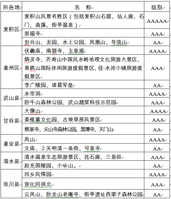 天水市恢復開放的國家A級旅游景區(qū)名單