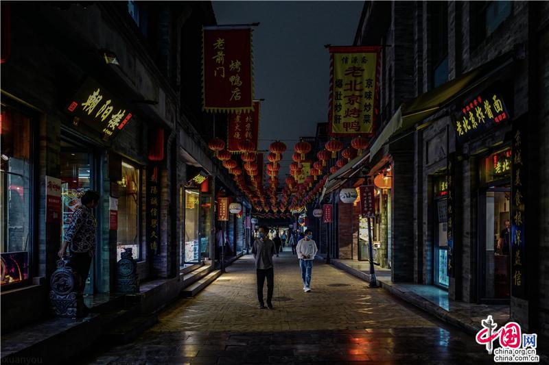 昨天(5月21日)下午三點(diǎn)半后,北京的天氣突然由白天變成了黑夜,當(dāng)時(shí)小編正在前門(mén)鮮魚(yú)口美食街拍攝,光線的明暗變化中,民國(guó)風(fēng)的灰墻青瓦的街道,忽然生出幾分魅惑而神秘的美感,紅燈籠在風(fēng)雨中搖曳、巨大的京劇招貼畫(huà)在墻上,胡同里人影憧憧……