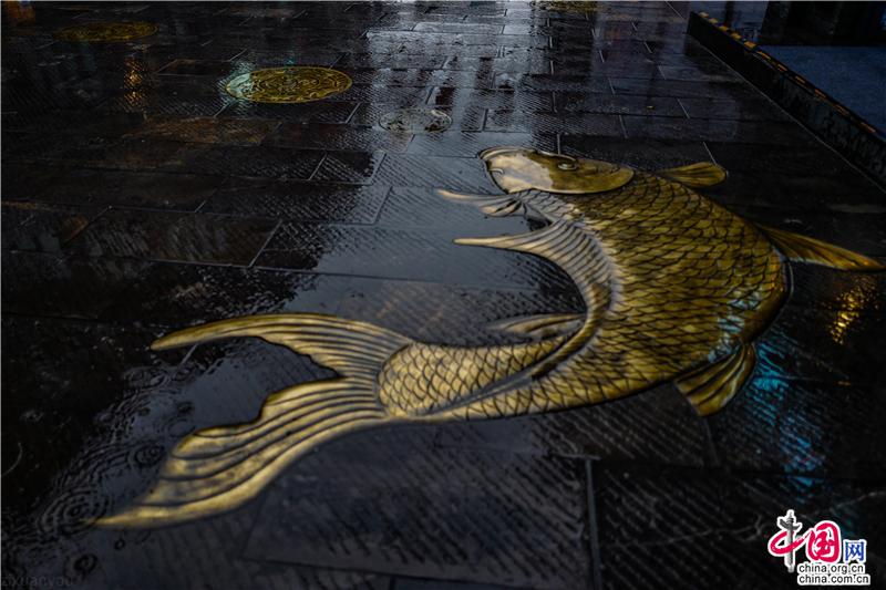 地上的銅質(zhì)錦鯉是“如魚(yú)得水”顯得靈動(dòng)而逼真起來(lái)……