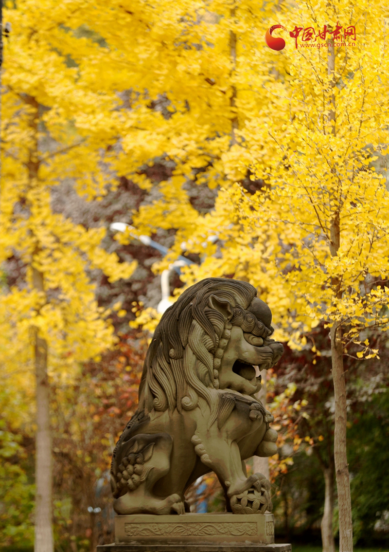 一片黃葉帶來(lái)秋的訊息,一片銀杏林則映襯一尊石獅子的美好時(shí)光,在五泉山,隨著深秋到來(lái),銀杏泛黃,莊嚴(yán)的石獅與金黃的銀杏林產(chǎn)生了巧妙融合。在銀杏泛黃的時(shí)光里,石獅的威嚴(yán)中多了幾分恬靜。