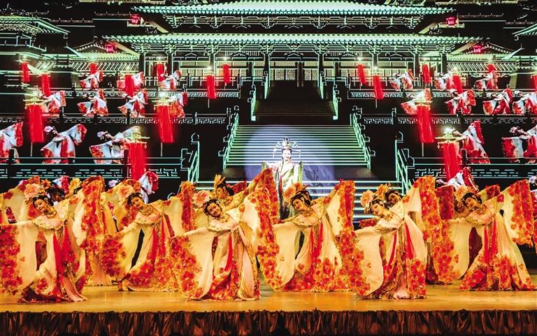 《相約千年》以“絲綢之路”和“海上絲綢之路”為主題,分序《東方之光》、上篇《絲路之旅》、中篇《絲路明珠》、下篇《絲路風(fēng)采》和尾聲《再約千年》五個板塊,每個板塊又由若干各有主題的舞段組成。