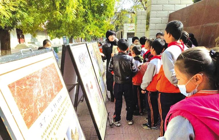 “以前認為看文物,了解武威的歷史文化,需要進博物館才能看得到。沒想到,現(xiàn)在在家門口就看到了。”黃羊鎮(zhèn)農(nóng)民王文山對記者說道。為更好地發(fā)揮博物館的社會教育職能,拉近博物館與廣大人民群眾的距離,10月底,武威市雷臺漢文化博物館組織宣教部、保管部工作人員集中開展流動展覽“四進”活動。