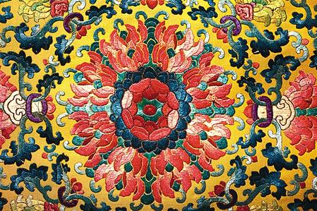 明黃江綢彩繡云蝠紋座具(局部) 沈陽(yáng)故宮博物院藏