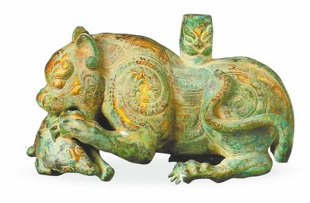 青銅鎏金虎噬羊形器座 甘肅省博物館藏