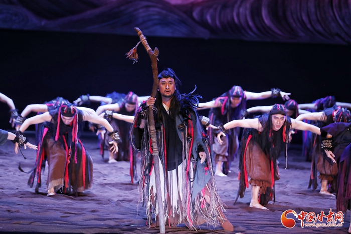 據(jù)悉,該劇由序《坤·農(nóng)耕》、第一幕《乾·天祭》、第二幕《際會》、第三幕《天梯》和尾聲《太極》組成,化用“黃帝問道”的典故,以軒轅氏(黃帝)與嫫母(黃帝次妃)的真摯愛情為主線,將傳統(tǒng)八卦之各卦象塑造為性格各異的各色人物,從他們恩愛情仇中,表現(xiàn)先民們對人與自然的探尋、理解和追求,最終在崆峒山智者廣成子的點(diǎn)撥下,五行八卦各歸其位,軒轅氏與嫫母完美結(jié)合,呈現(xiàn)出一幅天人合一、萬類呈祥的農(nóng)耕文明畫卷。