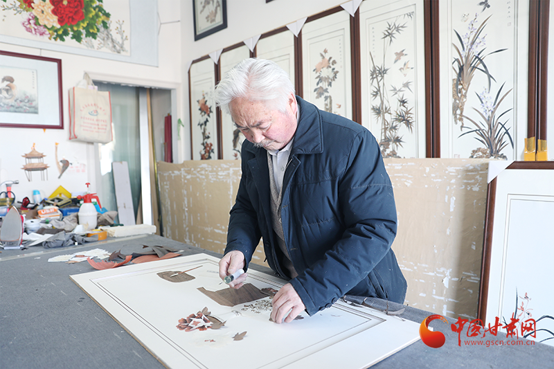 中國(guó)民間藝術(shù)家協(xié)會(huì)會(huì)員、副高級(jí)工藝美術(shù)師蘇永生正在制作作品“學(xué)海無涯”,寓意為“好學(xué)上進(jìn)”