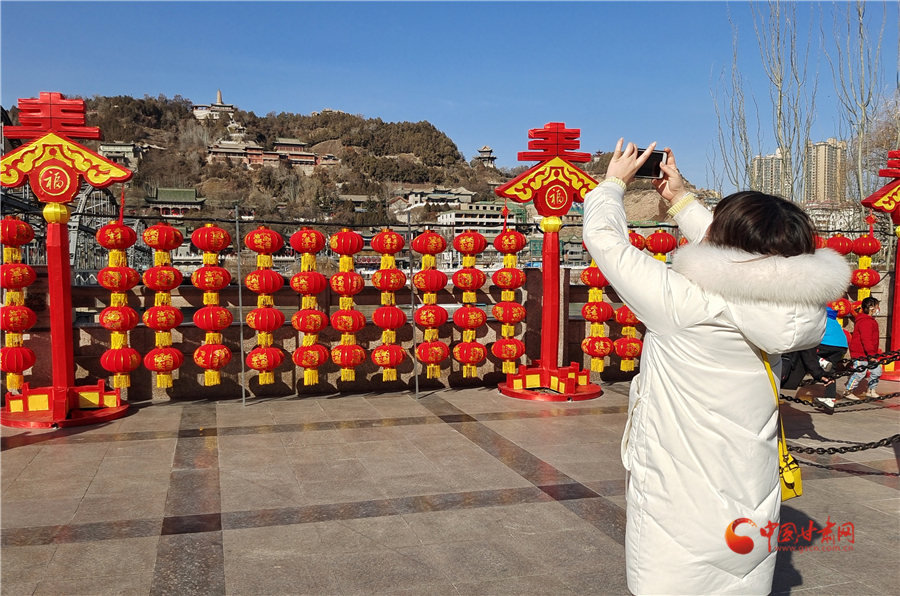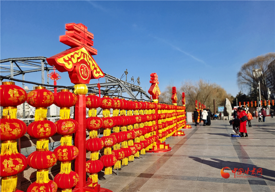 中國(guó)紅更配中國(guó)年,2月3日,記者在蘭州中山橋看到,中山橋廣場(chǎng)完成了節(jié)日亮化,火紅的燈籠搭配春天的裝飾,讓百年鐵橋在喜慶中迎接新春,吸引游客前來(lái)打卡拍照。