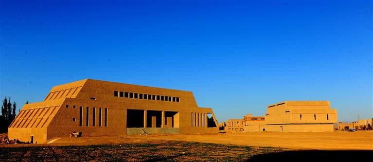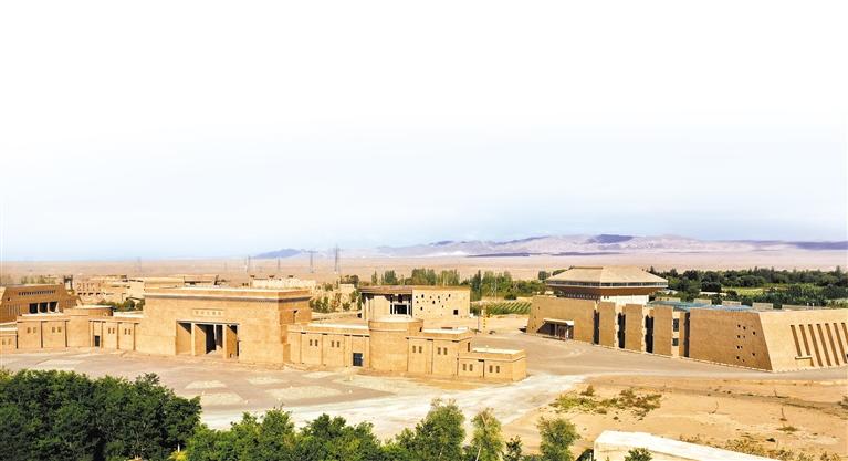 走在磨盤大道上,逐一參訪已經(jīng)建成的敦煌國際美術(shù)館、古化石館、佛教藝術(shù)館、中華根藝館、古錢幣館、絲綢之路館、彩陶館、玉文化館、栗亭硯館、青銅器館、隕石館、非遺館12個單體博物館、胡楊山以及正在建設(shè)中的沙漠寶藏館。