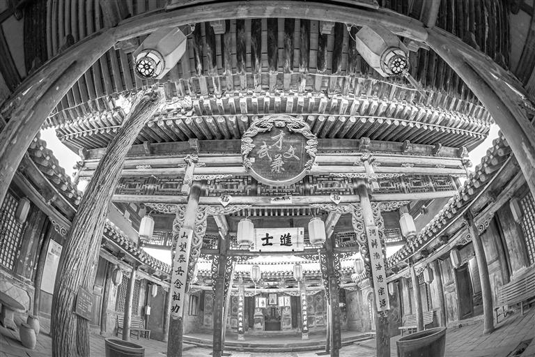 在這里,八仙桌上擺著的文房四寶,依然還飄著淡淡的墨香;墻上的字畫栩栩如生,筆走龍蛇,令人贊嘆;木門、木窗、木桌、木凳,簡樸溫厚如謙謙君子;高懸的匾額,穿透久遠的歲月,看著它們,仿佛在與歷史對話;抬頭可以看到,這里的椽子是方形的因為這里是給學生立規(guī)矩傳授知識的地方,梁和柱子都是圓形的,印證了“無規(guī)矩不成方圓”的道理。