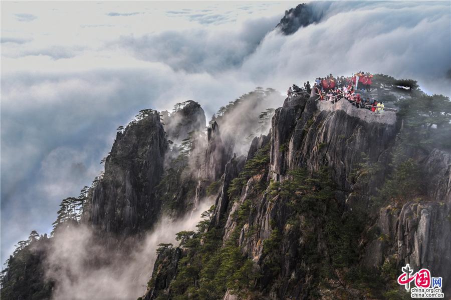 【點睛】云海隨著氣流漫過天都峰與蓮花峰時瘋狂的傾瀉而下,浩浩蕩蕩直奔東方注入大海,成就浩瀚的海洋。