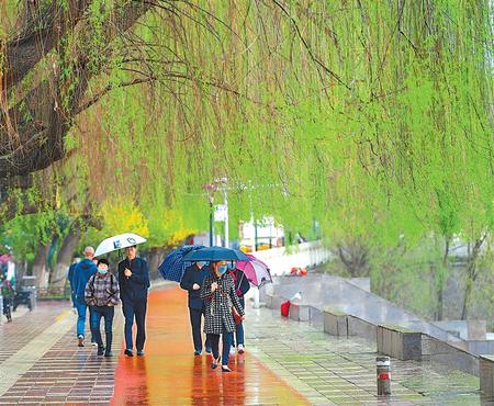 3月31日,一場春雨一洗連日的沙塵,人們在蘭州黃河風(fēng)情線盡享雨后美景。新甘肅·甘肅日報記者 盛學(xué)卿