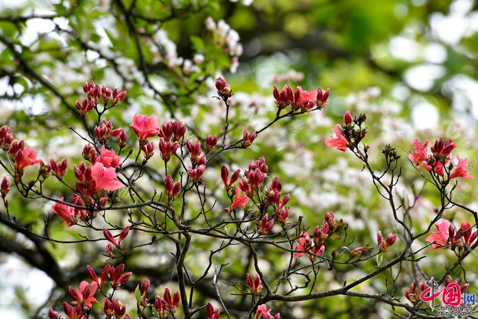由于黃山山上氣溫較低,當山下春色褪盡,花開凋零,五月初的黃山之巔才有初春的景象,樹掛新綠,空氣中彌漫著嫩綠和花兒的芳香;最絢麗的高山杜鵑花競相開放,峭壁上,深坳里,路旁邊,把黃山裝點得分外妖嬈,是這個季節(jié)最大的亮點,黃山的植物物種最具有多樣性的景區(qū),還有許多有名或無名的花在各自特定的時段綻放。