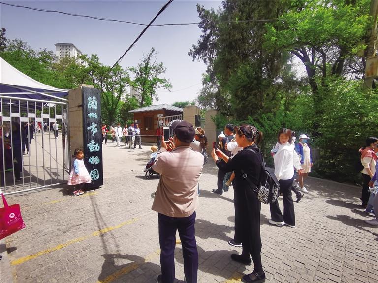 “我要和動物園的大門合影” “快來給我和‘蘭州市動物園’的大牌子拍張照”……5月7日10時許,前往蘭州市動物園游玩的市民絡(luò)繹不絕,大門口懸掛著的略顯斑駁的黑底綠字的“蘭州市動物園”的門牌,仿佛是最能觸動人們記憶的“坐標(biāo)點”,大家排隊再和它照張相成為進(jìn)園的固定儀式。