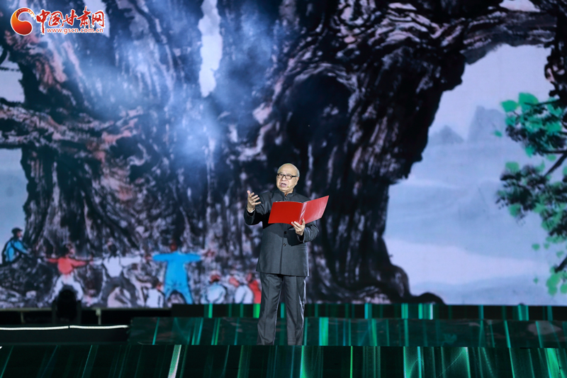 開(kāi)幕式之后的“水墨關(guān)山·槐蔭天下”晚會(huì),以“黃·紅·綠”三色歷史篇章新理念,展現(xiàn)平?jīng)鰷嫔>拮兊臍v史發(fā)展新格局。晚會(huì)以童謠《大槐樹(shù)謠》開(kāi)場(chǎng),展現(xiàn)了屹立于崇信山坳中的大槐樹(shù),歷經(jīng)3200歲風(fēng)雨,矗立成為民族精神的象征。非遺表演唱《弦子腔》+《崇信民歌》展現(xiàn)了崇信人民延續(xù)農(nóng)業(yè)生態(tài)精神,演繹對(duì)真善美的追求。還有書(shū)畫(huà)頻道的書(shū)畫(huà)家們現(xiàn)場(chǎng)通力合作,激情創(chuàng)作,專(zhuān)門(mén)為崇信人民創(chuàng)作了兩幅丈二畫(huà)作——《雄峙千秋》《公劉與崇信》,為本場(chǎng)晚會(huì)添色添彩。
