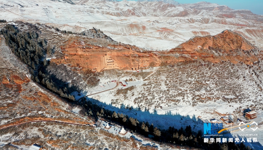 這是11月21日航拍的甘肅省張掖市肅南裕固族自治縣馬蹄寺風(fēng)景區(qū)雪景。新華網(wǎng)發(fā)(楊永偉 攝)