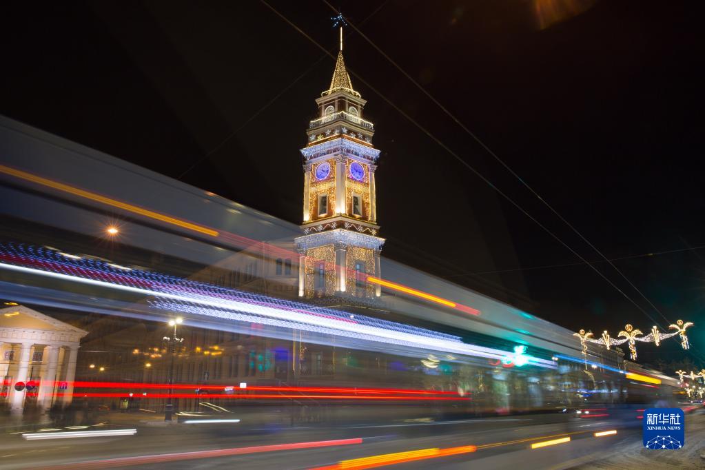 新年即將到來,俄羅斯圣彼得堡街頭點亮各色燈飾,營造節(jié)日氣氛。