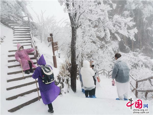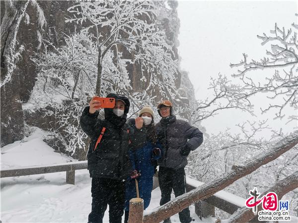 “哇! 好漂亮?。?rdquo;2月17日,安徽黃山風景區(qū)再次迎降春雪,驚羨慕名前來賞雪的游客。