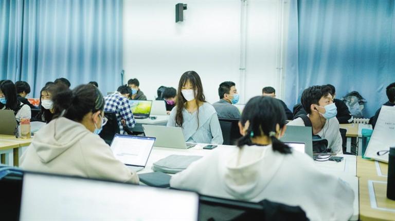 文學(xué)院2021級的洪逸下午的課程是“大學(xué)寫作”,早早就來到教室的她表示,“在教室上課,老師講授的知識更加直觀,課堂的互動也變得更加生動豐富了。”
