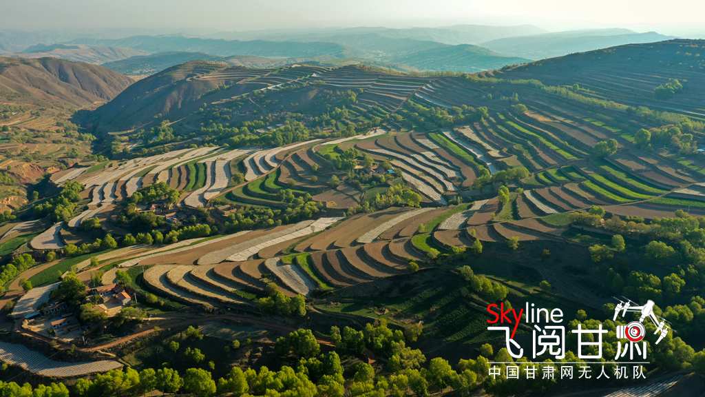 初夏時(shí)節(jié),一場雨后的定西市安定區(qū)石泉鄉(xiāng)3000畝標(biāo)準(zhǔn)化農(nóng)田和5萬畝設(shè)施梯田,青山環(huán)抱、線條分明,鄉(xiāng)村點(diǎn)綴其間,在不同的光線下呈現(xiàn)出不同色彩,美如畫卷。