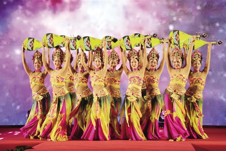 晚上8點(diǎn),“博物館之夜”主題演出在老兵合唱團(tuán)帶來(lái)的大合唱《領(lǐng)航》中正式拉開(kāi)帷幕?;趾氪髿獾那榫拔璧浮稄堯q出塞》、充滿年輕活力的《追夢(mèng)人》、曼妙婀娜的《敦煌樂(lè)舞》……一個(gè)個(gè)精彩的節(jié)目,一陣陣熱烈的歡呼與掌聲,臺(tái)上臺(tái)下情景交融,共同完成了這場(chǎng)流光溢彩的文藝盛宴。