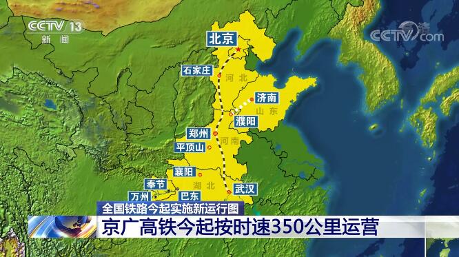京廣高鐵從北京至武漢這一段,今天起按時(shí)速350公里運(yùn)營(yíng),新型復(fù)興號(hào)智能動(dòng)車組列車上線。從北京到武漢,旅行時(shí)間縮短到4小時(shí)以內(nèi)。