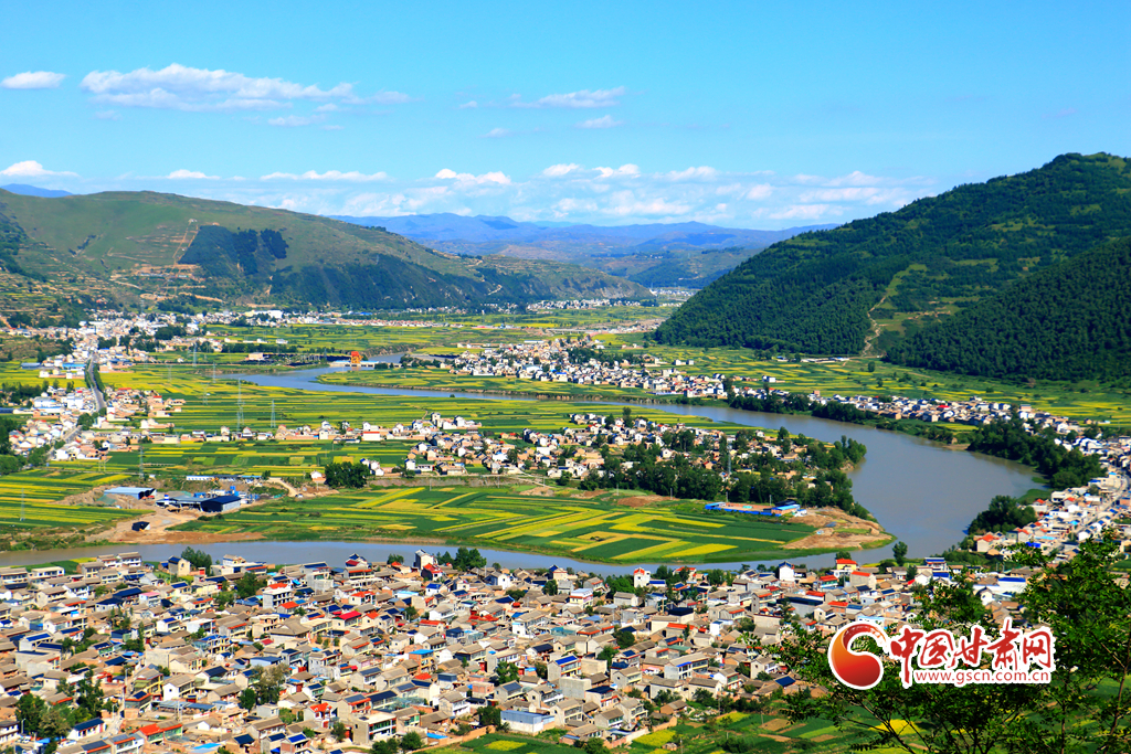 盛夏時(shí)節(jié),岷縣十里鎮(zhèn)洮河兩岸的油菜花競(jìng)相綻放,與民居、山川、林地、豐收在望的各類中藥材相映,構(gòu)成了一幅生態(tài)宜居的田園畫卷,美不勝收。