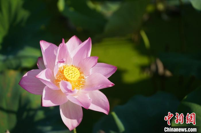資料圖:圖為荷花美麗綻放。游海飛 攝