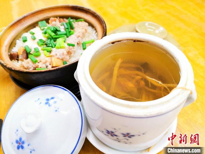 資料圖為特色煲仔飯搭配原盅參絲燉湯,是廣東臺(tái)山部分食客的選擇之一。 中新社發(fā) 李曉春 攝