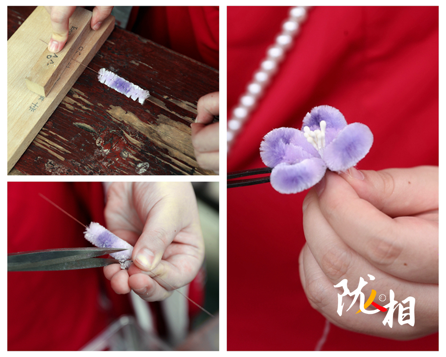 “我也在不斷學(xué)習(xí),現(xiàn)在可以用仿點(diǎn)翠工藝,讓簪花更有質(zhì)感。”宗怡彤說(shuō)道。