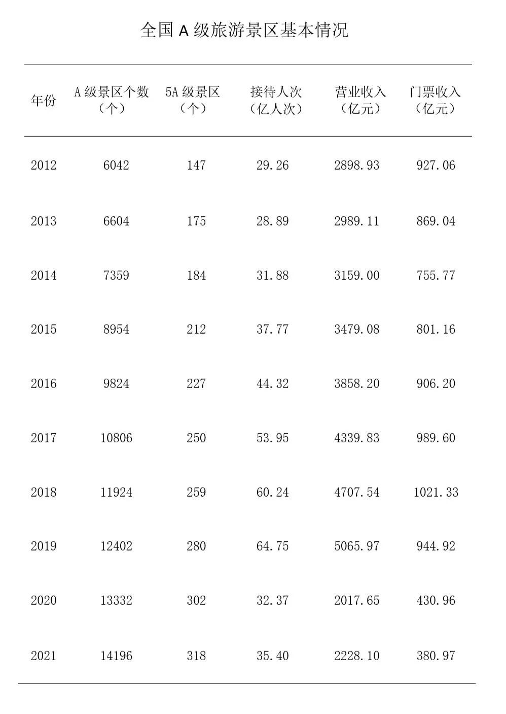 統(tǒng)計(jì)數(shù)據(jù)顯示,2021年全國(guó)A級(jí)旅游景區(qū)個(gè)數(shù)達(dá)到14196個(gè),全國(guó)A級(jí)旅游景區(qū)接待游客35.4億人次。