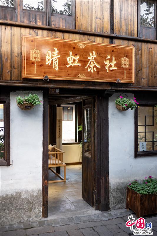 一杯清茶慰秋涼。一半清香,一半醉。湖光軟漾,目光游弋,步子跟著流水緩了下來(lái),斜身隱入街角的茶樓,點(diǎn)上一杯“阿婆茶”,這是周莊入秋的儀式。古樸氣韻、木香纏繞,聲色之間,抿一口茶香,身與心皆泡在這杯江南意境里。正如館名“晴虹茶社”,一杯茶歇,如晴日彩虹,拂開(kāi)心中塵霧,只見(jiàn)晴天與好事。聚賓樓里阿婆茶香就著聲聲悠揚(yáng),時(shí)間氤氳成過(guò)眼云煙。
