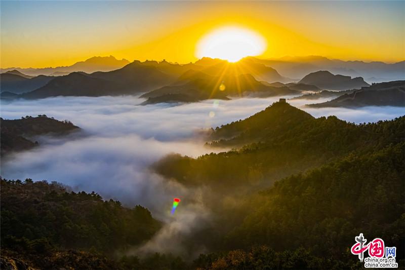 原標(biāo)題:晚秋中的金山嶺長城 云海日出彩葉羨煞人
